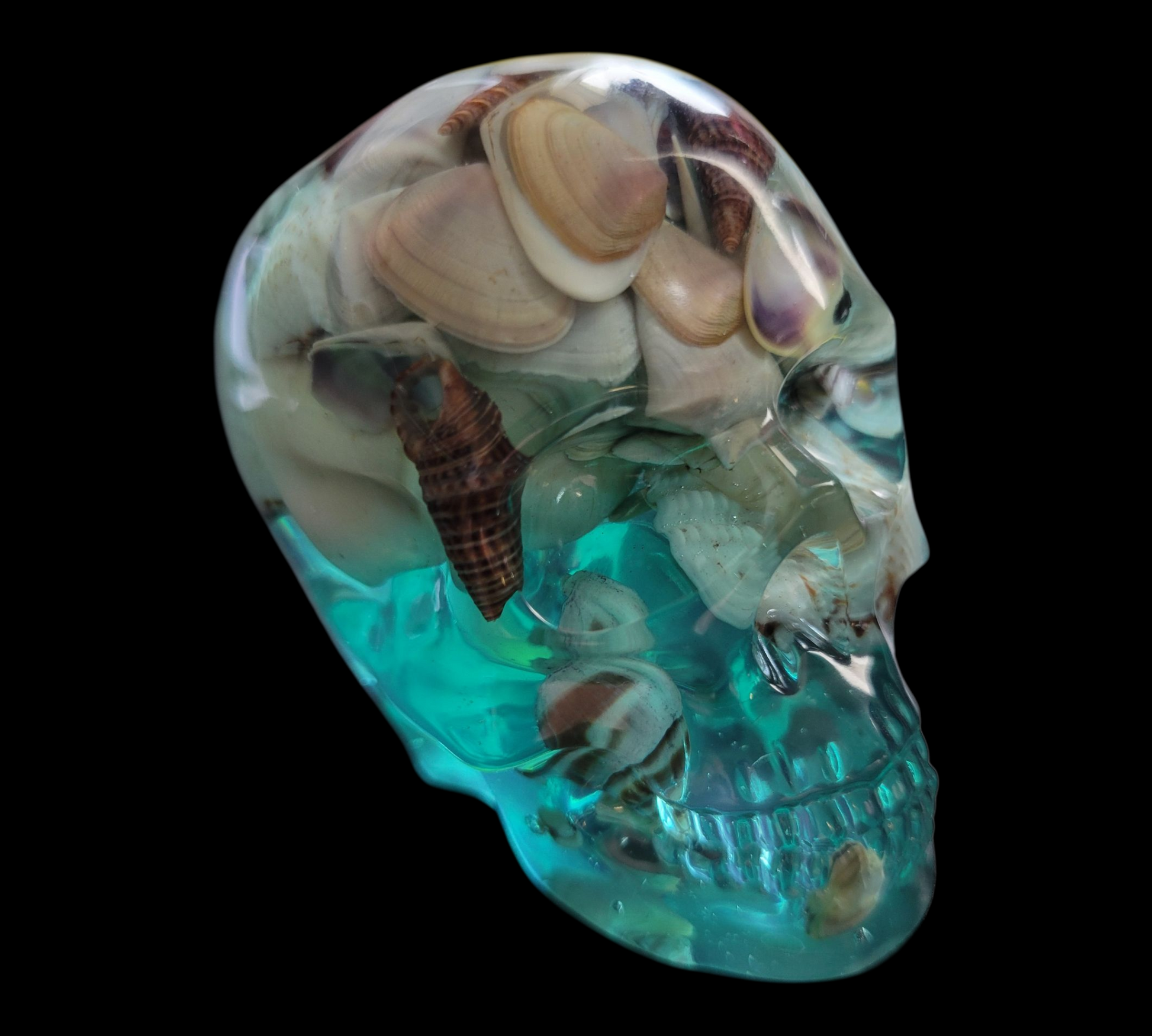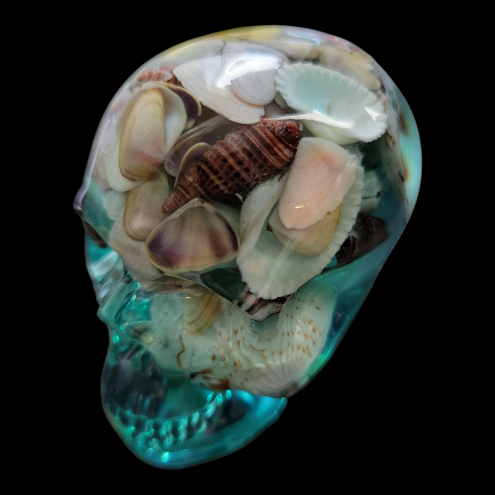 1/pc. Translucide vert glace et remplis de véritable coquillage. 5,5 cm x 5 cm x 7 cm.