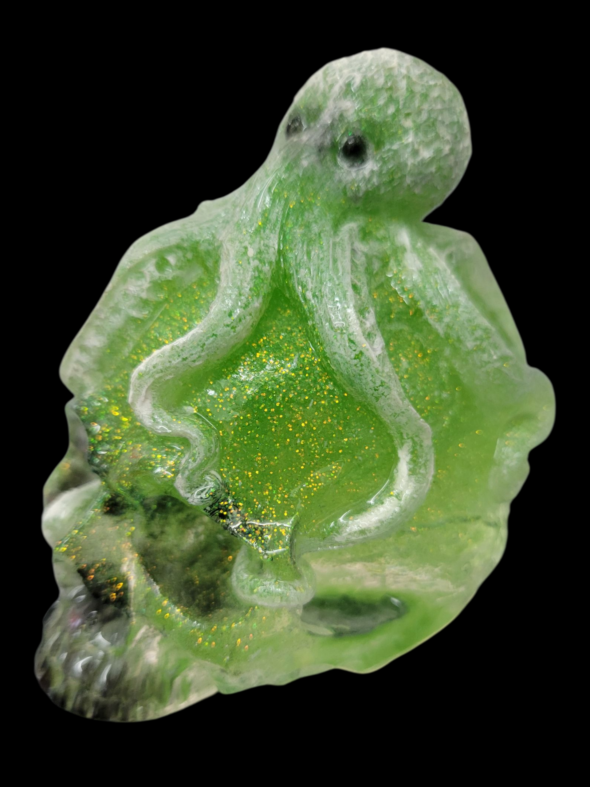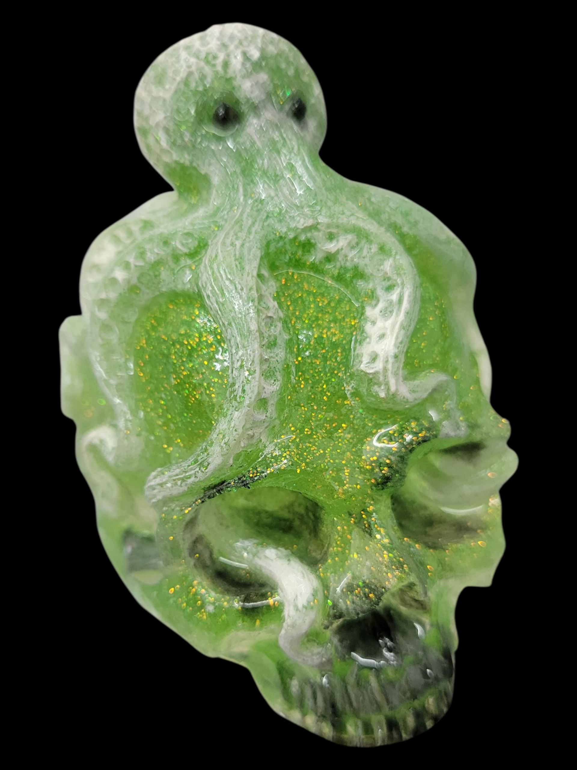 1/pc. Vert pailleté or, blanc et noir. 8 cm x 9 cm.