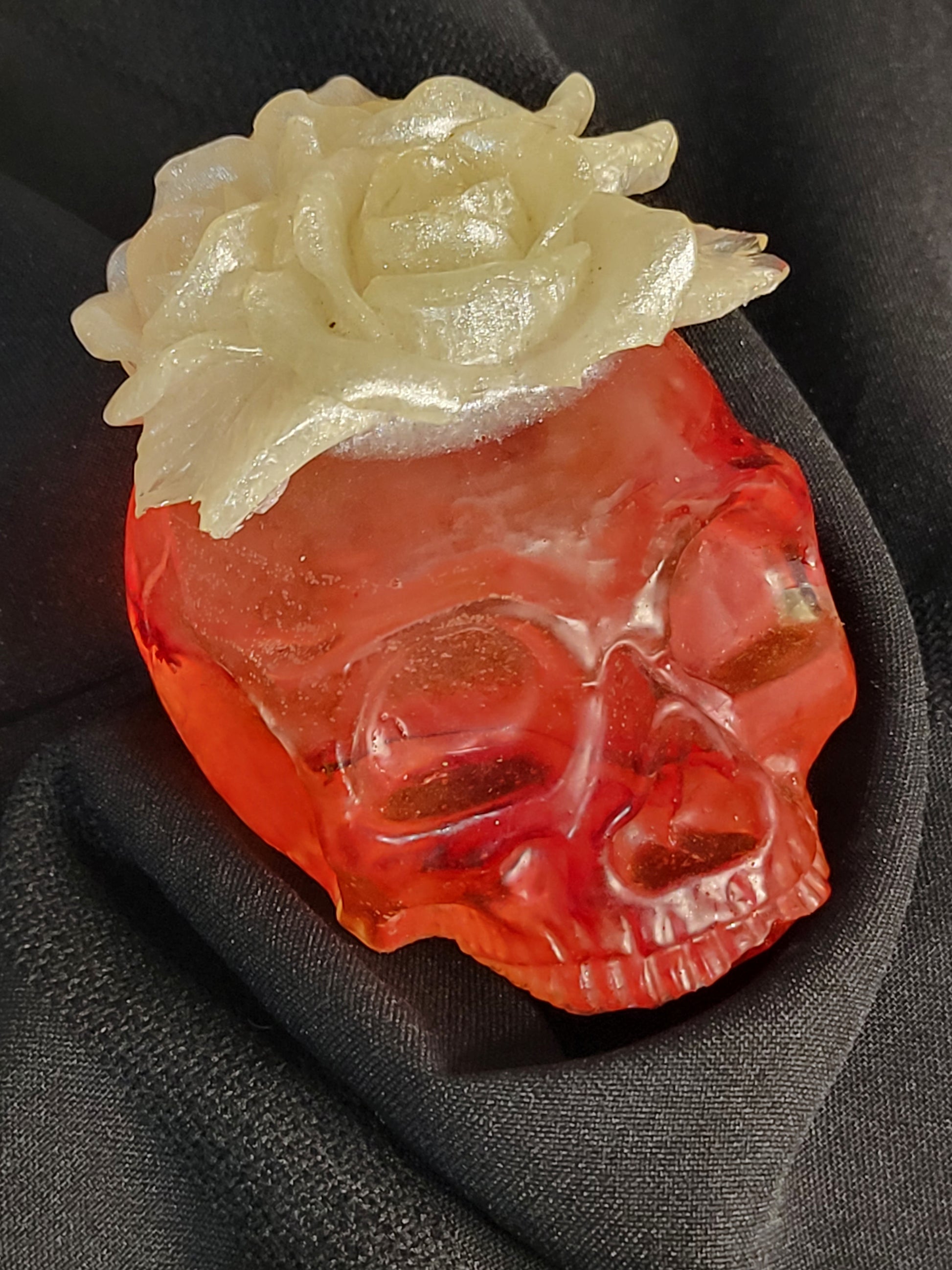 1/pc. Rouge translucide avec les rose blanche nacré. 8 cm x 9 cm .
