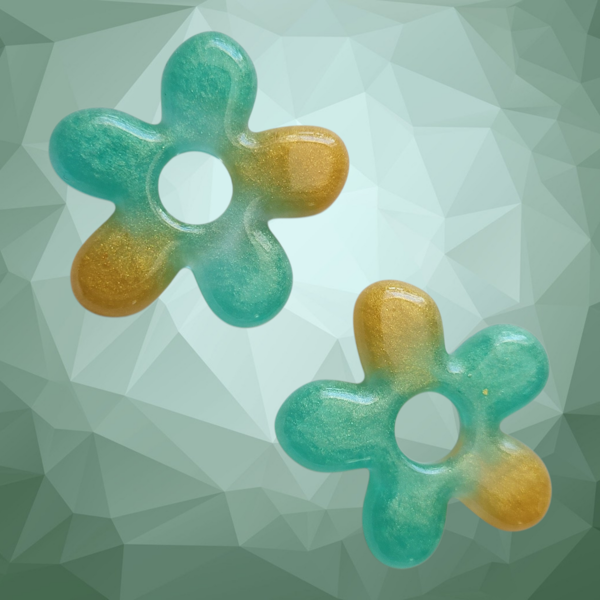 1/paire. Le turquoise associé au doré est une combinaison audacieuse et sophistiquée qui revient en force en 2025-2026, évoquant le glamour, l'évasion et le luxe. Ce duo vibrant, souvent vu sur les défilés et dans le street style, allie une teinte aquatique rafraîchissante a la chaleur métallique de l'or. Résine. 3,4 cm x 3,4 cm. ( Prendre créole de 2,5 cm pour un beau rendu.)
